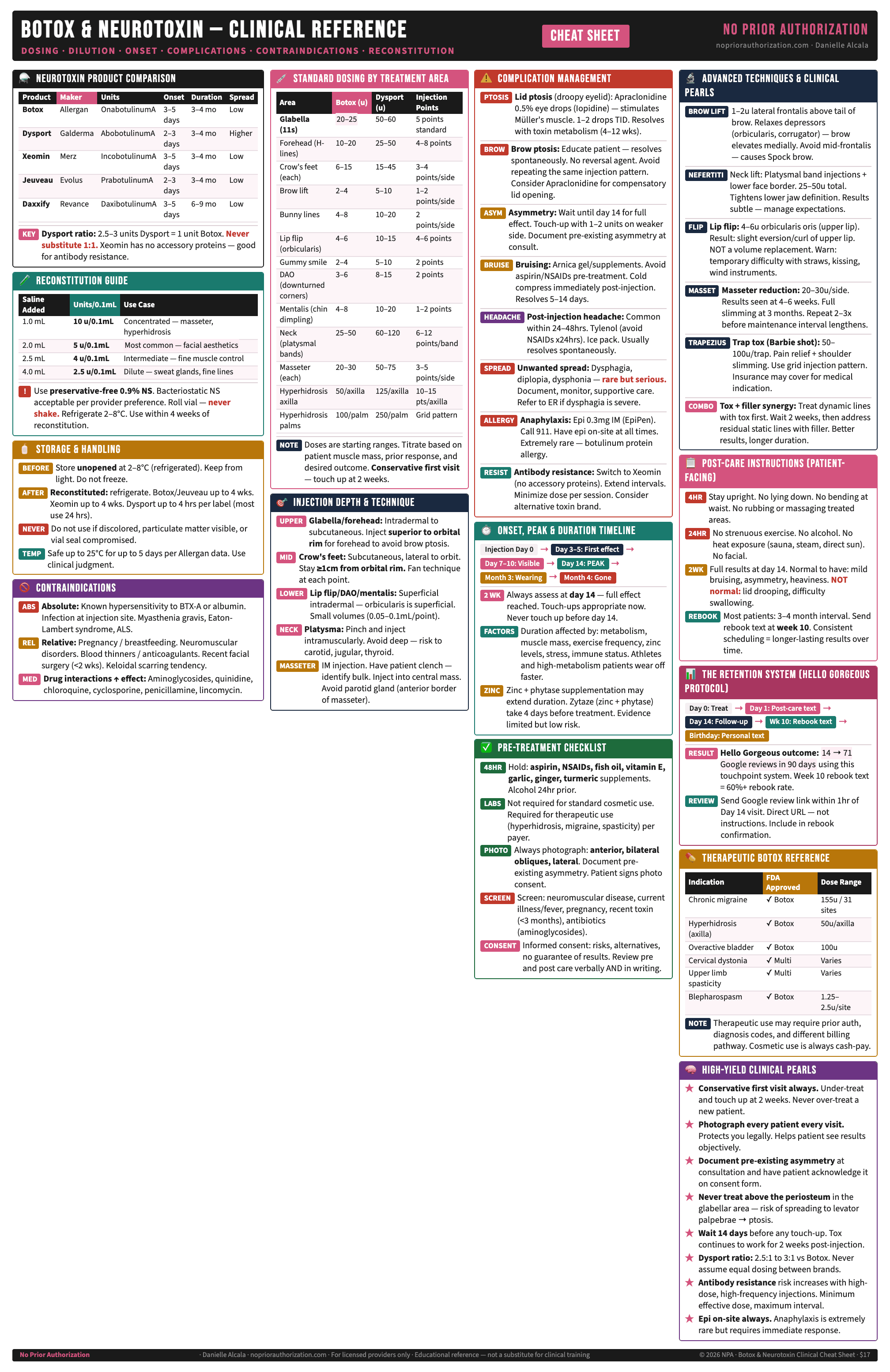 Botox & Neurotoxin Clinical Cheat Sheet