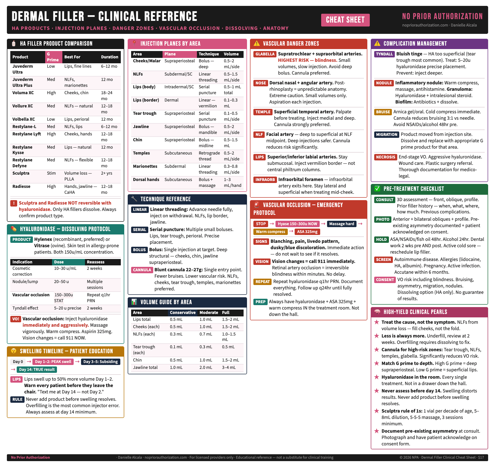 Dermal Filler Clinical Cheat Sheet