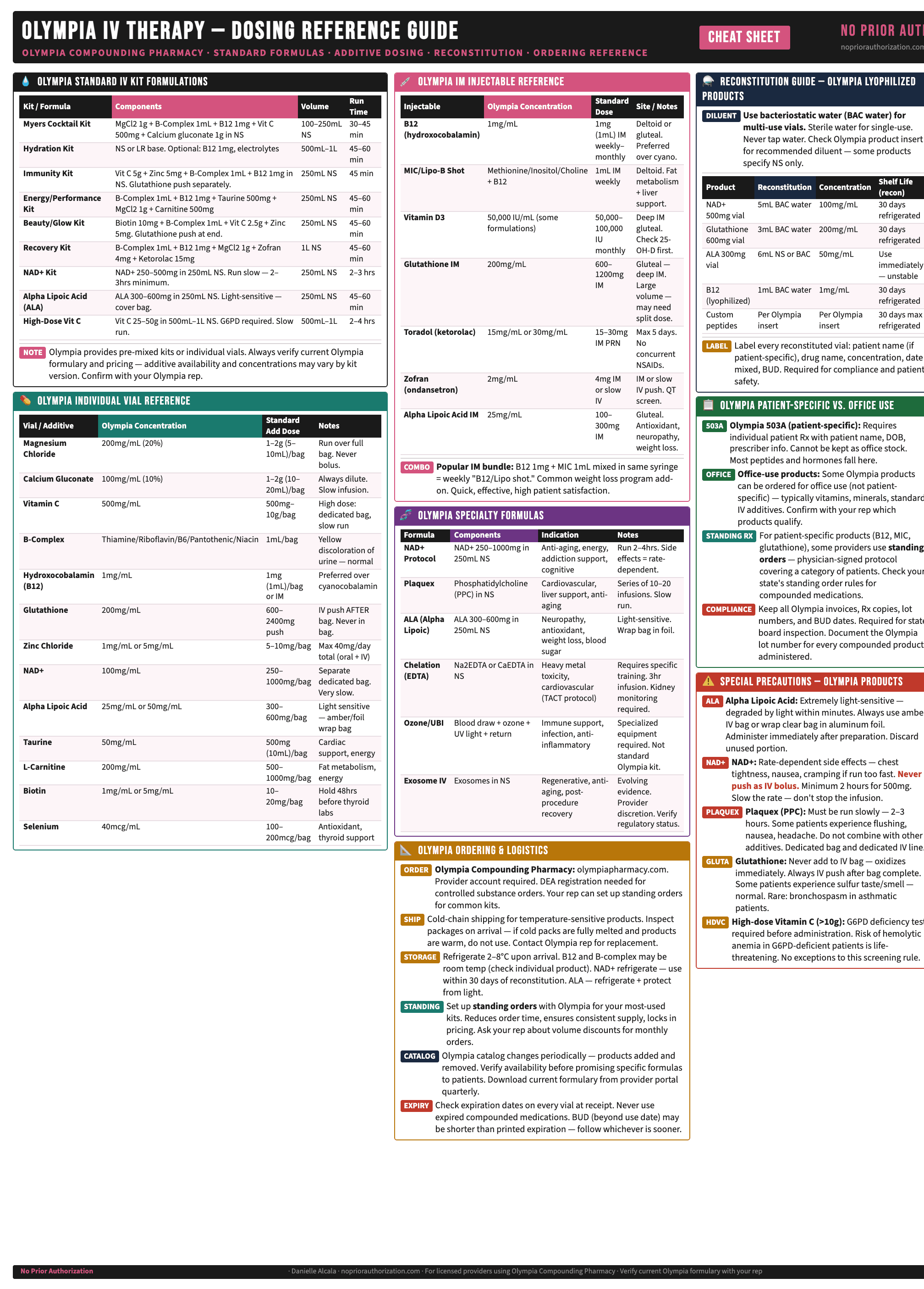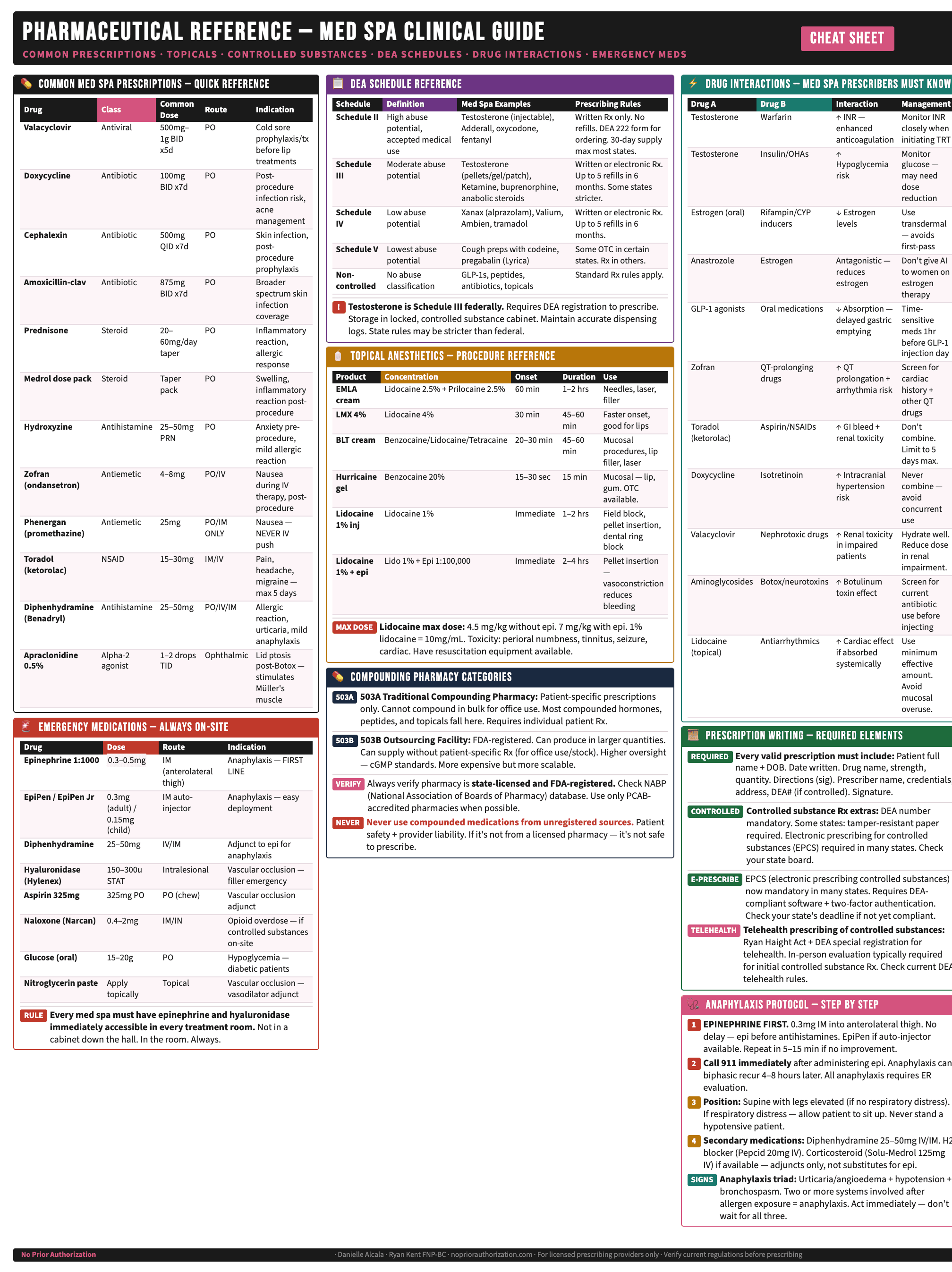 One page. Every key fact. Print it, laminate it, live by it. Built for med spa nurses and esthetic providers.