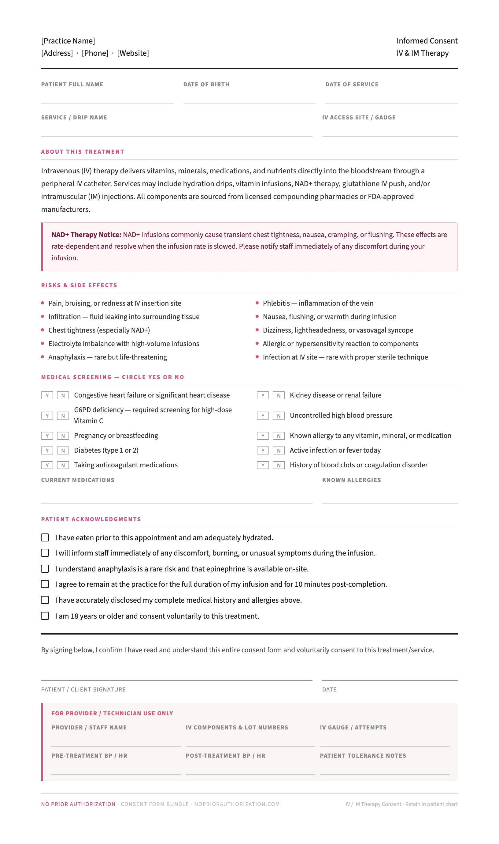 1 professional clinical templates — consent forms, intake documents, and patient education materials ready to print and customize.
